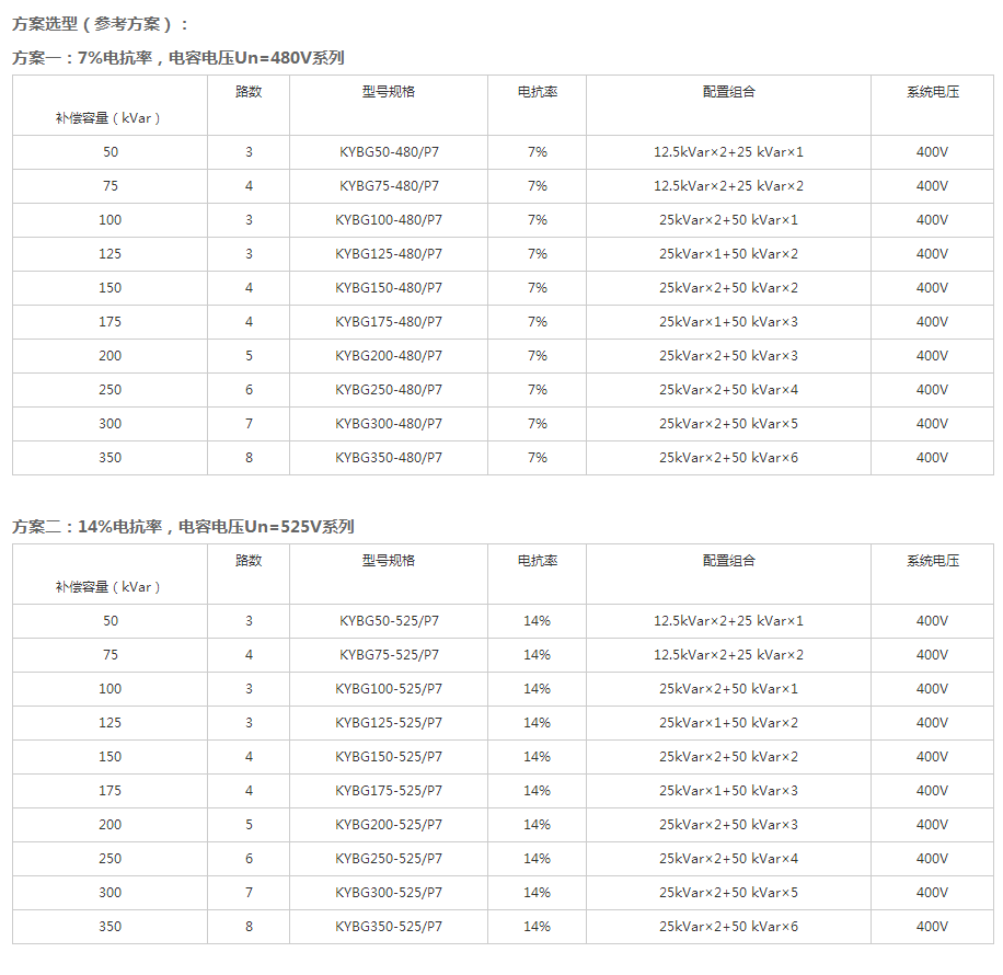 -采用更高电压等级的低压电力电容器:7%KYBG系列补偿滤波组件采用480V电容器,14%KYBG系列补偿滤波组件采用525V电容器,在400V低压电力系统运行更加稳定可靠。