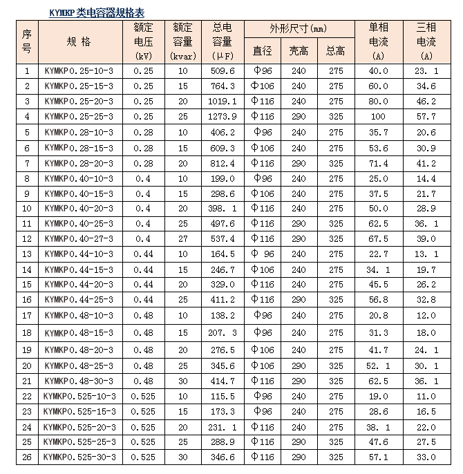 KYMKP圆柱形环保防爆电容器